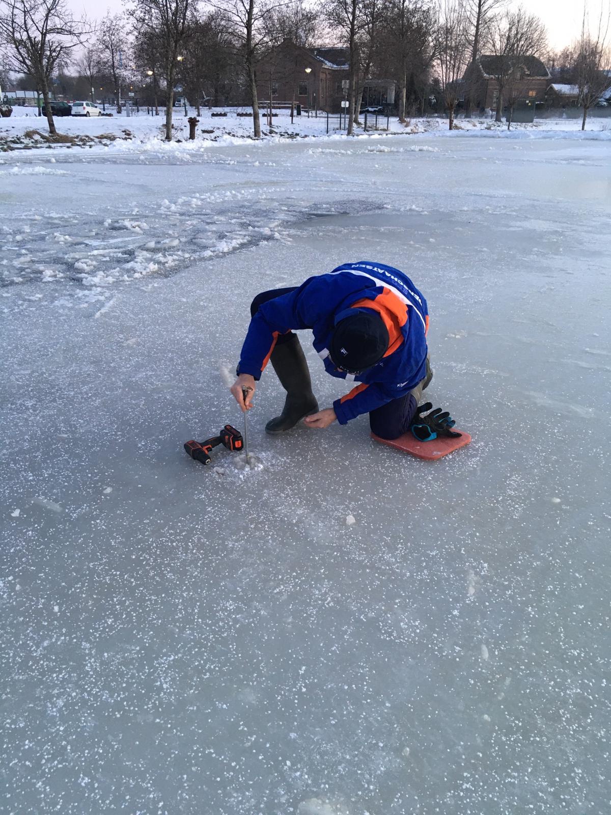 Vanmorgen vroeg waren Ton Fleer en Dirk de Groot al vroeg op het ijs bij -10 oC om de ijsdikte te meten. Daar waar de wakken waren werd 5 centimeter zwart ijs gemeten, dat is dus op die plaatsen minder sterk. Ook het wak met schoten aan de kant van café De Punt is nog niet tip top in orde. Maar er kan nu volgens de coronaregels geschaatst worden. Voor meer info over de regels: Natuurijsbaan